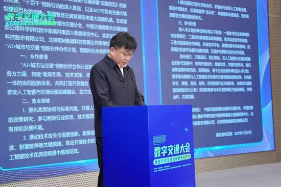 会议期间还举办了“2025智慧交通算法应用挑战赛”颁奖仪式,发布了“AI+城市与交通”创新伙伴合作计划倡议书,并进行了首批成员授牌。公路院副院长李万恒宣读了倡议书,公路院所属的中路高科集团公司入选“AI+城市与交通”创新伙伴合作计划成员单位。