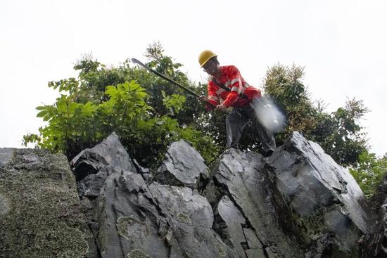 虞东霖所在的工区管辖15公里线路,近九成的线路紧邻九龙江,其中高堑坡、低壑地段高达80%以上。山坡上浮石众多,容易发生自然灾害。翻山越岭、排查隐患,是该工区的职责所在。