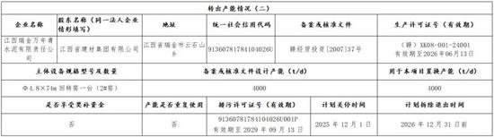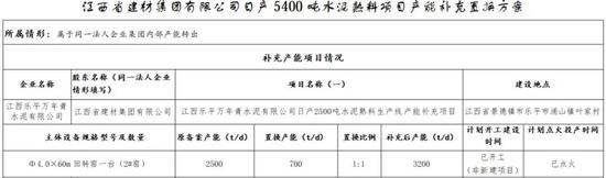 日前,江西省工业和信息化厅发布《关于江西省建材集团有限公司日产5400吨水泥熟料项目产能补充置换方案的公示》称,根据《工业和信息化部〈关于印发水泥玻璃行业产能置换实施办法(2024年本)〉的通知》(工信部原〔2024〕206号)等有关文件规定要求,江西省建材集团有限公司按照同一法人企业集团内部产能转出方式,拟将下属成员企业江西乐平万年青水泥有限公司1#窑2500t/d水泥熟料产能,用于江西乐平万年青水泥有限公司、江西玉山万年青水泥有限公司两家企业2条水泥熟料生产线进行补充产能,置换比例分别为1︰1和1.5︰1,分别补充江西乐平万年青水泥有限公司2#窑700t/d水泥熟料产能、江西玉山万年青水泥有限公司1#窑1200t/d水泥熟料产能;拟将下属成员企业江西瑞金万年青水泥有限责任公司2#窑4000t/d水泥熟料产能,用于对江西瑞金万年青水泥有限责任公司、江西万年青水泥股份有限公司两家企业2条水泥熟料生产线进行补充产能,置换比例分别为1︰1和1.5︰1,分别补充江西瑞金万年青水泥有限责任公司1#窑2500t/d水泥熟料产能、江西万年青水泥股份有限公司万年水泥厂8#窑1000t/d水泥熟料产能。现将江西省建材集团有限公司日产5400吨水泥熟料项目补充产能置换方案予以公示。