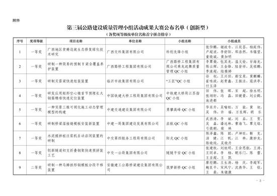 关于公布第三届公路建设质量管理小组活动成果大赛获奖名单的通知.pdf