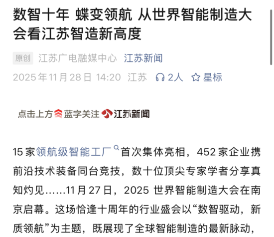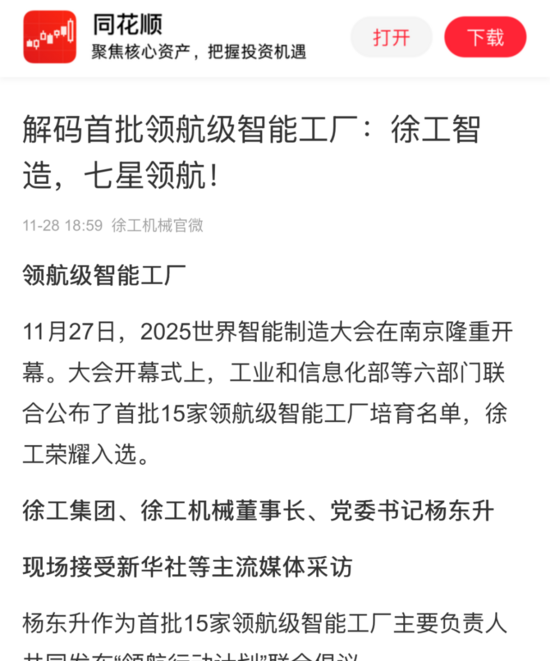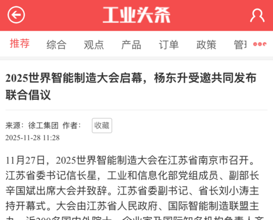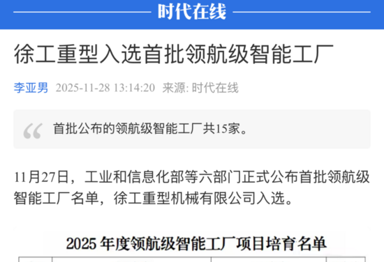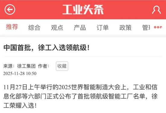 大会期间,多家权威媒体对徐工的相关动态进行了集中报道与多角度解读,形成了良好的传播效应。从入选领航级智能工厂名单,到参与发起行业倡议,再到展示可供借鉴的转型方案,徐工的这一系列动向,客观反映了企业在智能化浪潮中的扎实探索与阶段成果,也为观察中国制造业坚定不移推进高质量发展提供了现实例证。