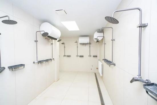 洗浴室设有淋浴区与更衣区,配备智能更衣柜、24小时恒温热水器及刷脸门禁。通过“磁山之家”App,职工可以实时查看浴室使用情况,随来随洗、无需等待。