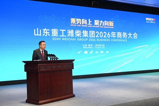 12月6日,以“乘势向上 聚力向新”为主题的山东重工潍柴集团2026年商务大会在潍坊举行。山东重工集团党委书记、董事长王志坚,潍坊市委书记刘运致辞。山东重工集团党委委员、副总经理,潍柴集团党委书记、董事长、总经理马常海主持并作主旨报告。中国工程机械工业协会会长苏子孟出席。来自全球各地的合作伙伴共计1200余人参加大会。