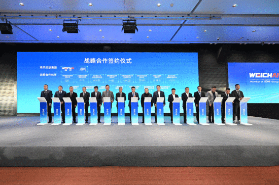 会上,潍柴集团副董事长、潍柴动力总经理王德成代表潍柴与15家战略合作伙伴签署战略合作协议,并为优秀战略合作伙伴颁奖。