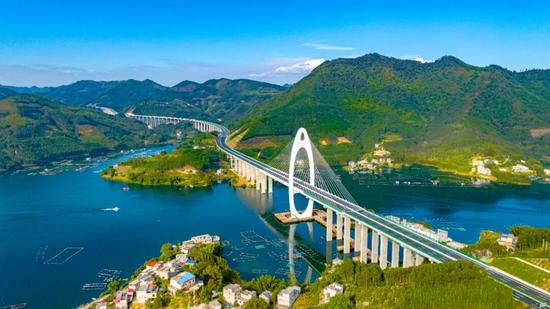 巴羌高速公路岩滩水库特大桥。