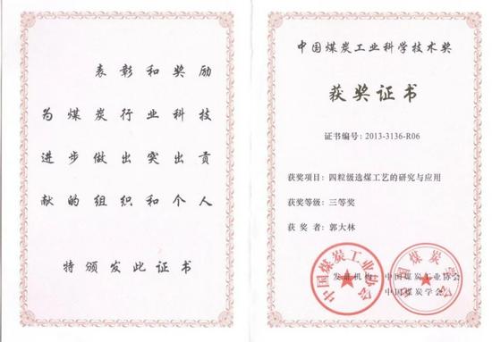 这份勇于创新的勇气和执着钻研的精神在团队之间不断传承着。2011年,在峰峰集团邯郸洗选厂设计项目中,针对该厂煤泥含量大的特点,年轻的项目负责人杨瑞峰带领项目团队,大胆采用邯郸洗选厂四粒级选煤工艺对原煤进行精细化分选。该工艺将浮选机和浮选柱结合起来,打破传统的粒级分选范围,创新性提出以0.125mm为界,有效发挥了4种不同粒级物料选煤方法及设备的优势,实现了数量效率提高6.5%以上,精煤产率提高4.5%的惊人效果。该工艺于2013年荣获中国煤炭工业科技进步三等奖。
