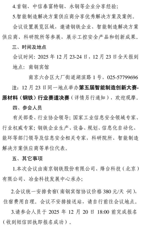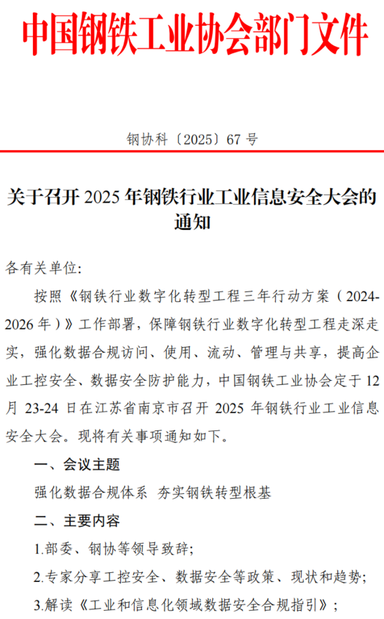 铁甲工程机械网> 工程机械资讯> 行业 > 关于召开2025年钢铁行业工业信息安全大会的通知