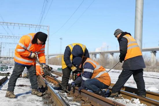 冬季降雪量大,道岔内的积雪会影响道岔正常运转。佳木斯工务段配备了由控制、加热、辅助检测等部件构成的电加热道岔融雪系统,能通过传感器采集雨雪量、轨温等数据,当相关数据低于预设阈值时自动启动加热,将轨温升至50摄氏度左右以消融冰雪,温度达标后便自动停机。