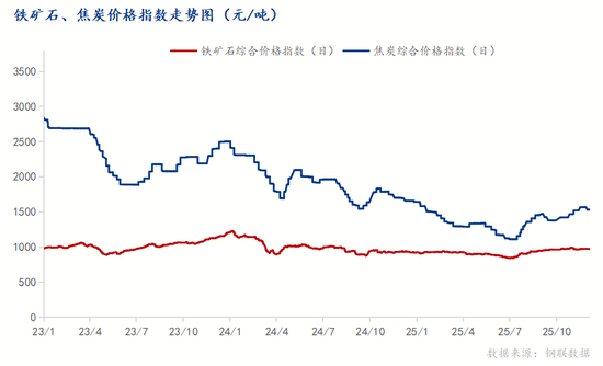 图2 2023-2025年铁矿石、焦炭价格指数走势图