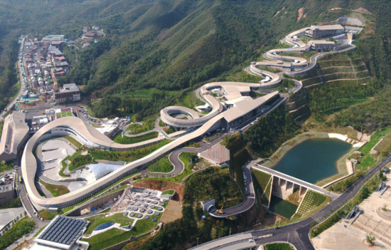 国家雪车雪橇中心赛道为狭长空间扭曲板壳结构,全长1975m,落差121m,在弯道数量、赛道长度和建造难度等方面均超越国外同类赛道,获中国建设工程鲁班奖、詹天佑奖。该技术依托国家科技部重点研发计划,自主研发了结构喷射混凝土材料制备及施工技术、开放式氨制冷系统安装及运行、竞速型赛道制冰修冰、气候保护遮阳系统建造、基于数字孪生的智能建造等成果,达到国际领先水平,是我国首条毫米级雪车雪橇赛道,成功打破国外技术垄断。