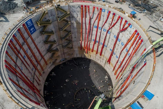北湖污水处理厂及其附属工程深隧泵房,圆形基坑周长约140m,直径43m。地下连续墙深度56m,基坑开挖深度为48m,该泵房是建设当期国内一次性建设规模最大的污水提升泵房,多导孔式弧形成槽技术在国内外没有先例,施工质量要求高。该技术保障了超深基坑施工安全和质量,提高了大型设备在软弱不均、岩层复杂环境下的适应性。同时,作为关键技术的成果获得了中施企协工程建设科学技术奖,是复杂地质超深基坑领域的标杆项目。