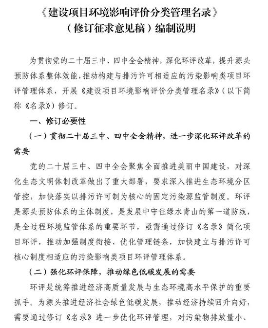 3.《建设项目环境影响评价分类管理名录》(修订征求意见稿)编制说明