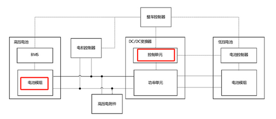 4,至此高压回路完成,电池输出高压给DCDC,DCDC正向工作给小电瓶充电,完成上高压整个动作。