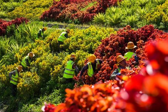 邢栋带领同事们,一面寻访专家,一面在苗圃选购时反复比对,最终筛选出夹竹桃、九里香、万年麻这批“扛旱好手”。它们需水少、生命力强,是边坡养护的好选择。