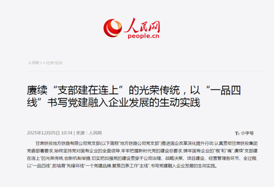 坚持党的领导、加强党的建设是国有企业的光荣传统和独特优势,是国有企业的“根”和“魂”。在“十四五”攻坚收官、“十五五”谋篇布局的关键时刻,地方铁路公司党支部将认真学习贯彻党的二十届四中全会精神,全面加强党的领导和党的建设,将政治优势、组织优势转化为企业的竞争优势、发展优势,有效引领保障环线铁路安全高品质运营和公司过渡转型高质量发展。(作者:甘肃铁投地方铁路有限公司)