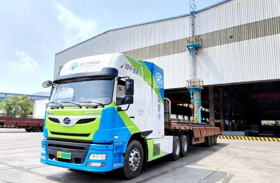 图为氢能重卡运输钢材
