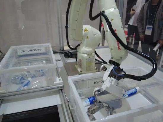 川崎重工业的拆码垛解决方案使得基于人工智能的合并拆码垛变得轻松简便,支持通过视觉识别,将不同规格的货品、按照垛型需求码垛至相同或不同托盘上。实现AI驱动的免示教、轻码放、省空间。