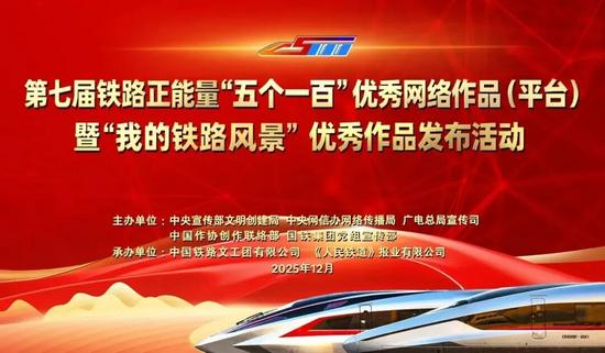 12月10日,由中宣部文明创建局、中央网信办网络传播局、广电总局宣传司、中国作协创联部、国铁集团党组宣传部联合主办的第七届铁路正能量“五个一百”优秀网络作品(平台)暨“我的铁路风景”优秀作品发布活动在京举行