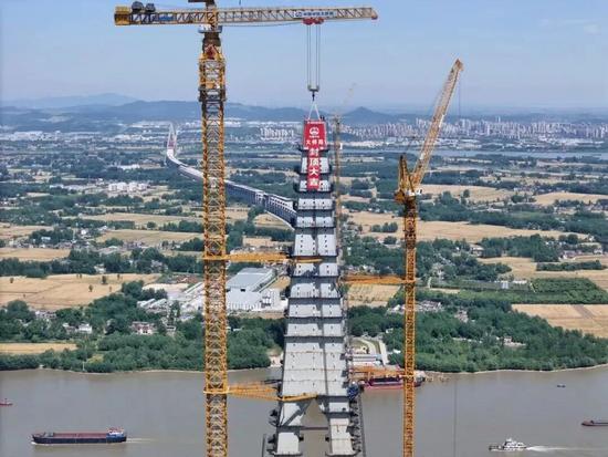 创造新的建桥纪录!崇启公铁长江大桥钢梁顶推圆满完成