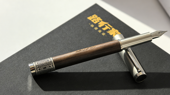 “笔下轮回系列”钢笔以“轮回”为设计理念,笔身采用不锈钢与酸枝木相结合,原木色泽温润典雅。钢笔尺寸经过精心设计,握感舒适,搭配德国原装笔尖,书写顺滑。包装内含钢笔一支、墨囊六支及相关配件,无论是自用还是馈赠亲友,都是体现品味的上佳之选。