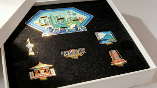 “泉城印象”冰箱贴套装精选锌合金材质,采用开模定制工艺,以烤漆上色与珐琅工艺精心打造。套装生动再现了趵突泉、大明湖等泉城著名景观,将“家家泉水,户户垂杨”的泉城特色凝练于方寸之间。每枚冰箱贴都经过精细打磨,金属质感与彩色珐琅相映成趣,既是精美的装饰品,也是承载城市记忆的收藏佳品。