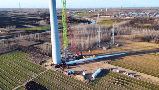 河北新河200MW风电项目位于河北省邢台市新河县,涉及寻寨镇、仁让里乡、白神首乡、西流乡等多个乡镇,是河北省重点新能源项目。该项目吊装作业位于农田区域,对设备场地面积利用率及转场运输效率提出了更高要求。中联重科LW2800A-200NA风电塔机底架支腿跨距仅18m×18m,具有场地占地小的特点,与其他吊装装备相比,显著减少了农田占用面积。同时,LW2800A-200NA风电塔机具备快速拆装、转场运输车辆少等优势,高度契合农田地形下的施工需求。