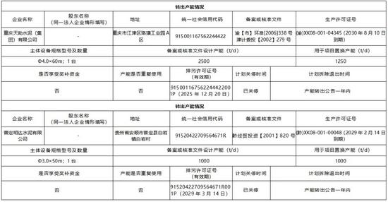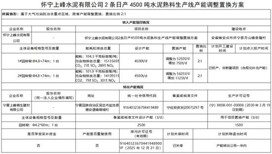 12月11日,安徽省工业和信息化厅发布《关于怀宁上峰水泥有限公司水泥熟料生产线产能调整置换方案的公示》称,根据《水泥玻璃行业产能置换实施办法(2024年本)》等文件,怀宁上峰水泥有限公司拟将2条4500t/d水泥熟料生产线通过补产能方式将产能分别增加到5250t/d和5825t/d,置换产能来自宁夏上峰萌生建材有限公司、重庆天助水泥(集团)有限公司和普定明达水泥有限公司,置换比例为2:1。现将产能调整置换方案予以公示。