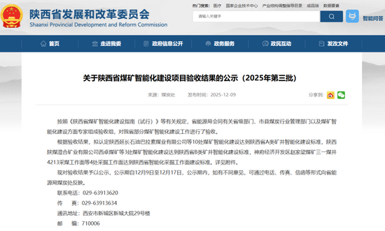 现对验收结果予以公示,公示期自12月9日至12月17日,公示期内,如有不同意见,可通过电话、传真、信函等形式向省能源局煤炭处反映。