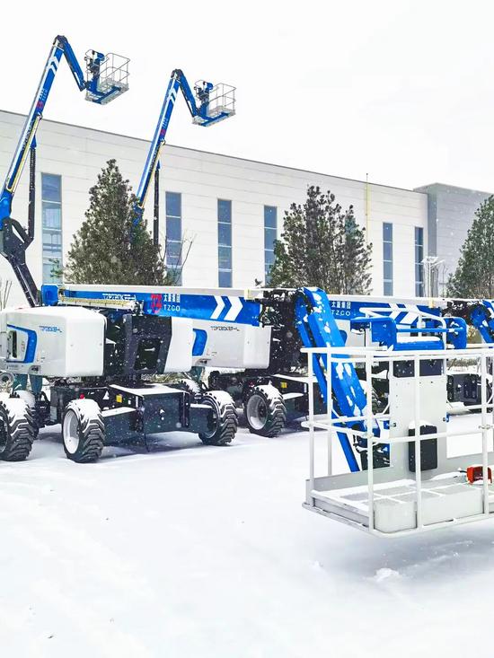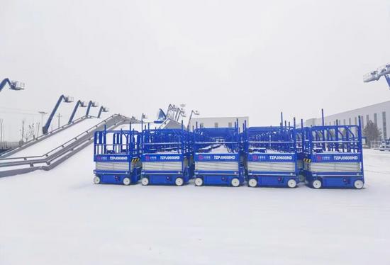 白雪皑皑间,一台台整装待发的艳丽产品默然矗立,宛如彩塑静立于纯白画卷。
