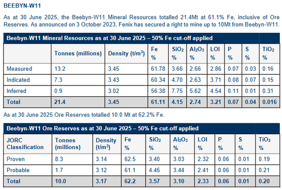 - Beebyn-W10:2026年待审批(采矿/环保许可),计划FY27开采