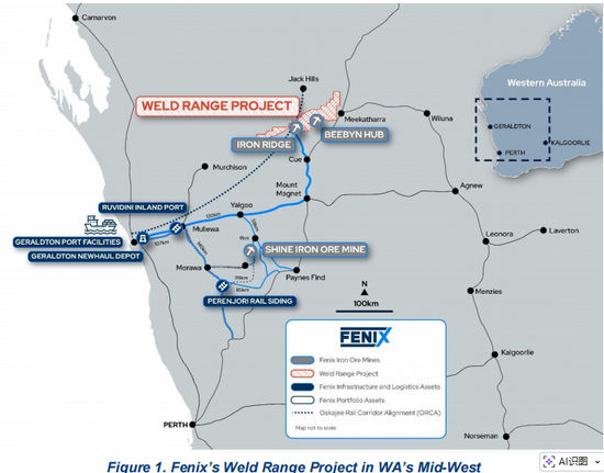 Fenix Resources2025年12月11日澳交所公告的未来三年铁矿石产量核心内容总结。先看一下公司的几个生产矿山的地理位置如下: