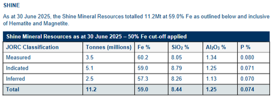 - 项目资源量:2.9亿吨(JORC 2012标准,平均品位56.8% Fe)