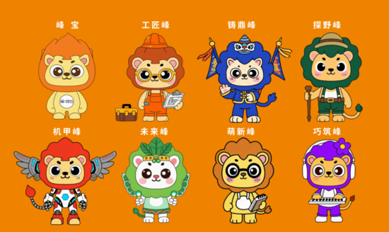 中铁工业“峰宝Z时代”项目以主形象“峰宝”为核心,衍生构建了8位角色,覆盖多样化职业特质与性格类型,通过角色矩阵体现从坚实基础到技术前沿、从文化传承到未来愿景的多维价值表达,具备良好的视觉识别性与传播适应性。