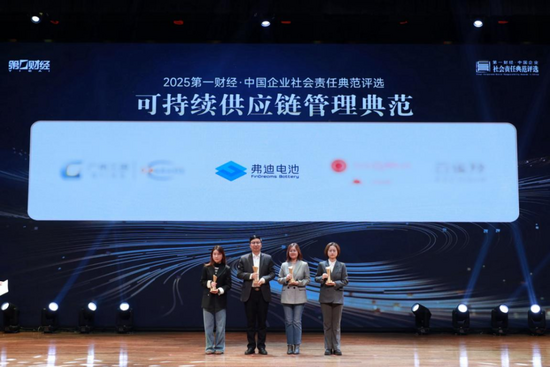 2025年12月11日,2025第一财经·中国企业社会责任典范评选正式揭晓,弗迪电池凭借可持续发展的管理实践与价值链伙伴的协同合作,荣获“可持续供应链管理典范”。