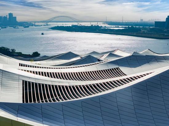 屋面“金属海浪”由26片凹形曲面拼接而成