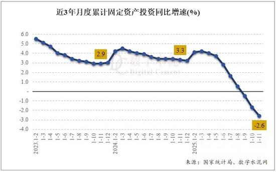 2025年1-11月,全国固定资产投资(不含农户)44.4万亿元,同比下降2.6%,降幅较1-10月扩大0.9个百分点,去年同期为增长3.3%。从单月投资来看,11月份固定资产投资(不含农户)环比下降1.03%。