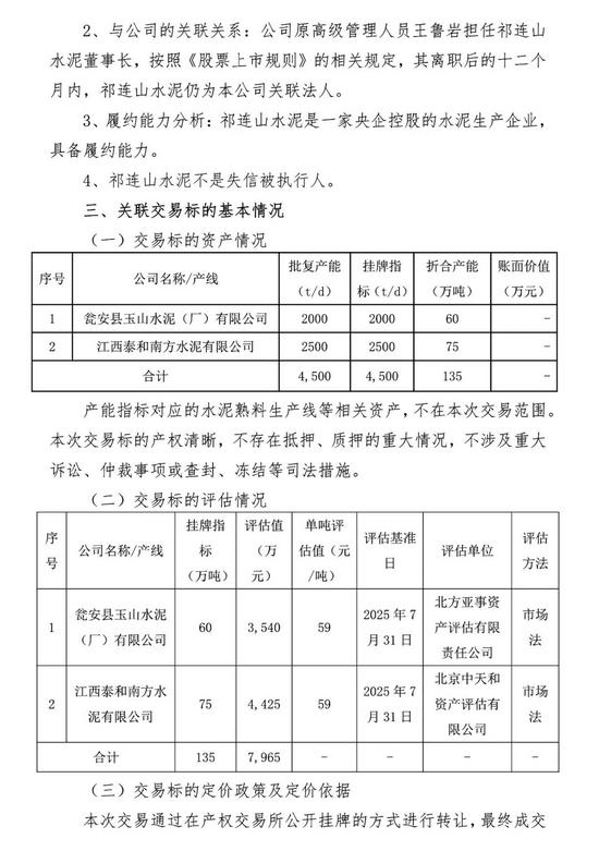 经产权交易所确认,祁连山水泥的子公司作为唯一意向受让方报名参与并根据挂牌条件缴纳了保证金,成为本次挂牌的受让方,其拟以挂牌底价受让上述产能指标。