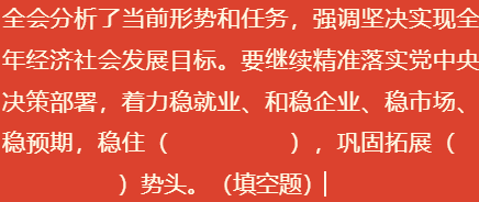 全会分析了当前形势和任务,强调坚决实现全年经济社会发展目标。要继续精准落实党中央决策部署,着力稳就业、稳企业、稳市场、稳预期,稳住经济基本盘,巩固拓展经济回升向好势头。宏观政策要持续发力、适时加力,落实好企业帮扶政策,深入实施提振消费专项行动,兜牢基层“三保”底线,积极稳妥化解地方政府债务风险。