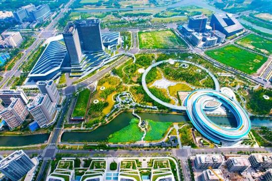 项目依托地理光照优势,在幕墙檐口铺设蓝色光伏玻璃,预计年发电量约35万度。项目还内设地下能源中心,为自身及周边实验室、住宅等提供冷热源,总供能面积达51.79万平方米,助力区域能源结构优化与供能安全稳定。