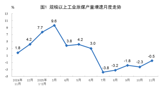 1—11月份,规上工业原煤产量44.0亿吨,同比增长1.4%。