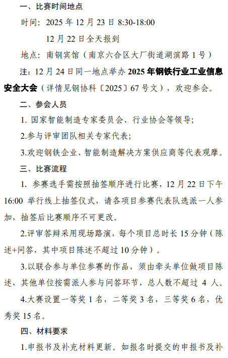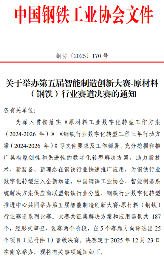 关于举办第五届智能制造创新大赛-原材料(钢铁)行业赛道决赛的通知