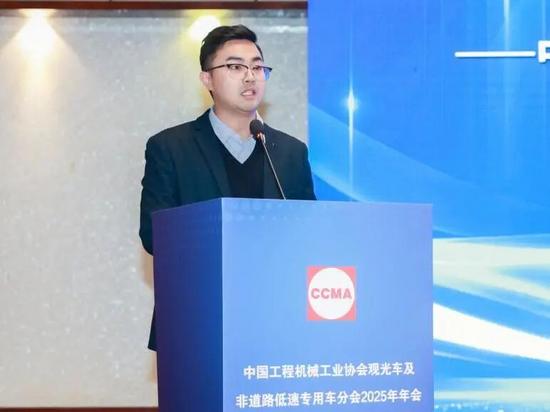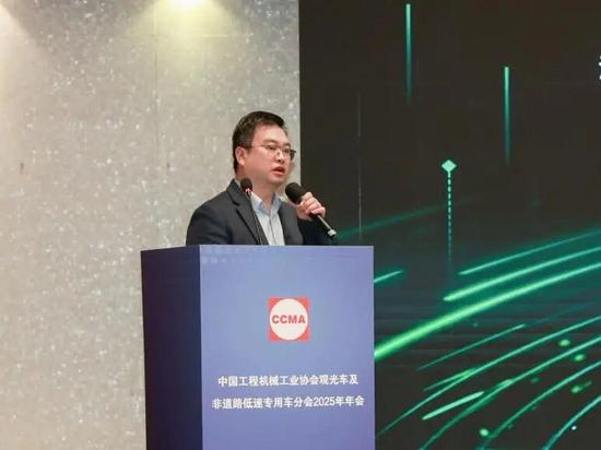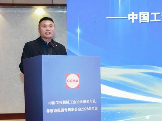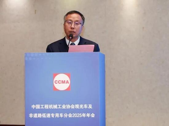 严建国在致辞中介绍了工程机械行业现状,并对观光车及非道路低速专用车行业发展提出期望,呼吁企业坚持以市场为导向,不断提升自主品牌竞争力。他指出分会应强化自身建设,充分发挥协会“九大服务平台”作用,助力行业高质量发展。