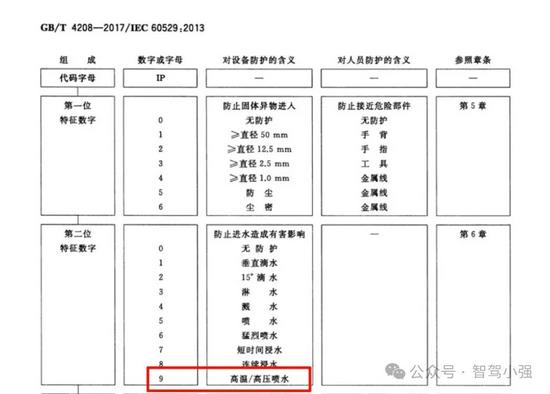 电池包一般在IP67或68上;当然也有严苛的追加69,可以防高压水枪,主要模拟洗车的实际使用场景: