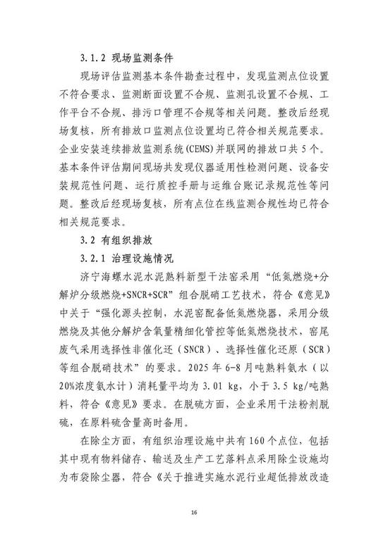 【超低排放公示】济宁海螺水泥超低排放改造和评估监测进展情况公示