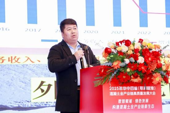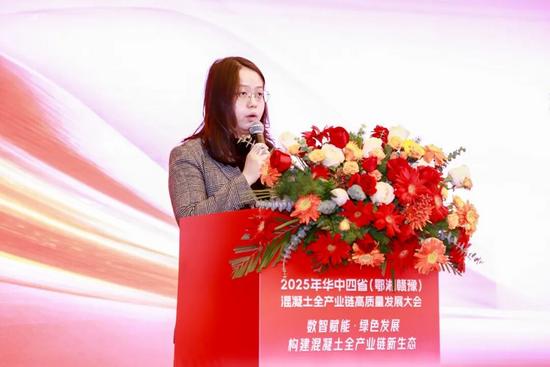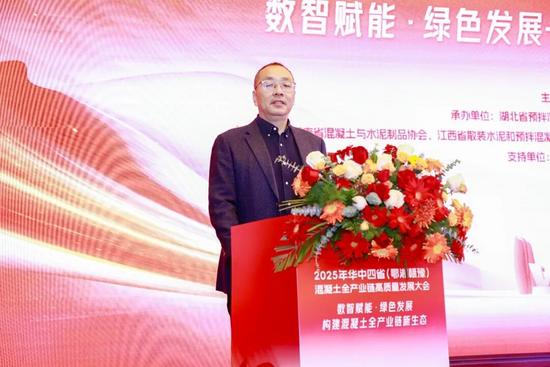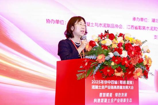 会上,凌安琪首先致欢迎辞。她指出,湖北省预拌混凝土行业在保障工程建设、提升建筑工程质量、推动绿色建造发展等方面成效显著,但受多种因素影响,面临市场下行、竞争“内卷”等严峻挑战,转型升级迫在眉睫。她提出了四点建议,一是实现绿色发展:树立绿色理念,推动绿色生产,推进固废利用,降低能耗与排放,打造绿色企业;二是走数智化转型之路:拥抱数字变革,升级生产装备,推进两化融合,配合监管数字化,优化运营管理;三是坚守质量底线:企业守住质量安全底线,健全管理体系,行业协会配合主管部门开展自律与监督;四是构建发展新生态:产业链上下游树立共同体意识,加强协作,行业协会搭建平台,维护行业价值。