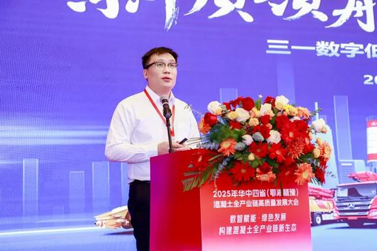 华新建材集团股份有限公司骨料业务运营总监王鹏作题为《材料创新赋能混凝土未来发展》的报告。