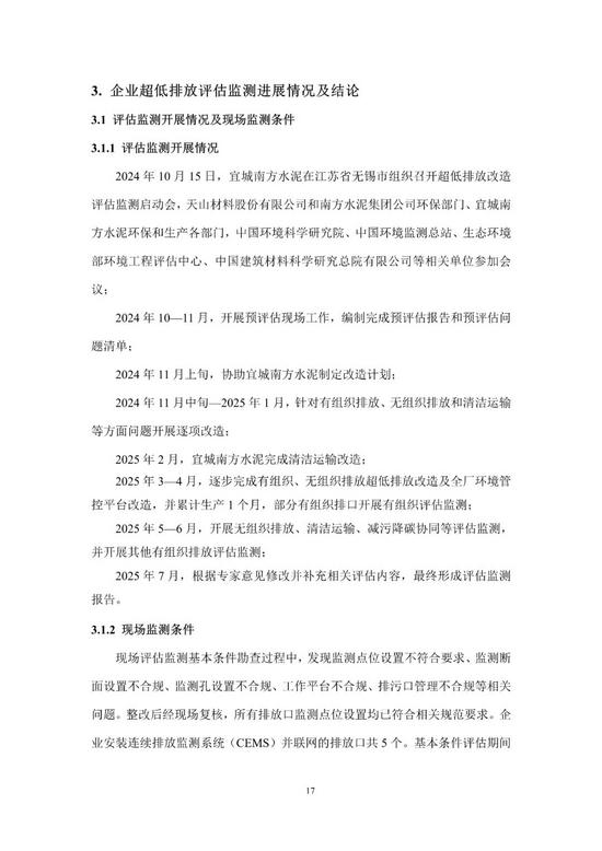【超低排放公示】江苏宜城南方水泥超低排放改造和评估监测进展情况公示