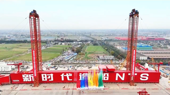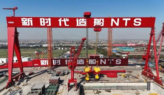 新时代造船表示,未来,随着两台起重机的陆续投产,将极大提升新时代造船大型船舶分段总组合拢的吊装能力,有效缩短船坞周期,对企业承接高端船舶与海洋工程装备订单、增强核心竞争力具有至关重要的战略意义。