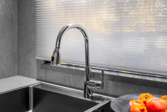 在厨房区域,九牧的抽拉龙头设计同样令人印象深刻。其灵活的抽拉式喷头可实现无死角清洁,让食材清洗和厨具打理都变得轻松便捷。这种对每个空间细节的精心打磨,正是"好房子""智慧"标准的最佳诠释。