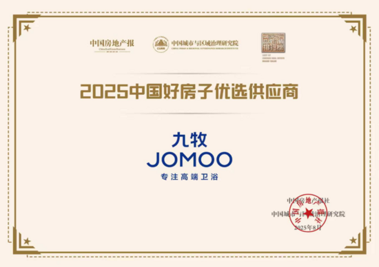 今年8月,在中国房地产报主办的“第十五届中国城市发展及房地产创新大会”上,九牧荣获“2025中国好房子优选供应商”称号。